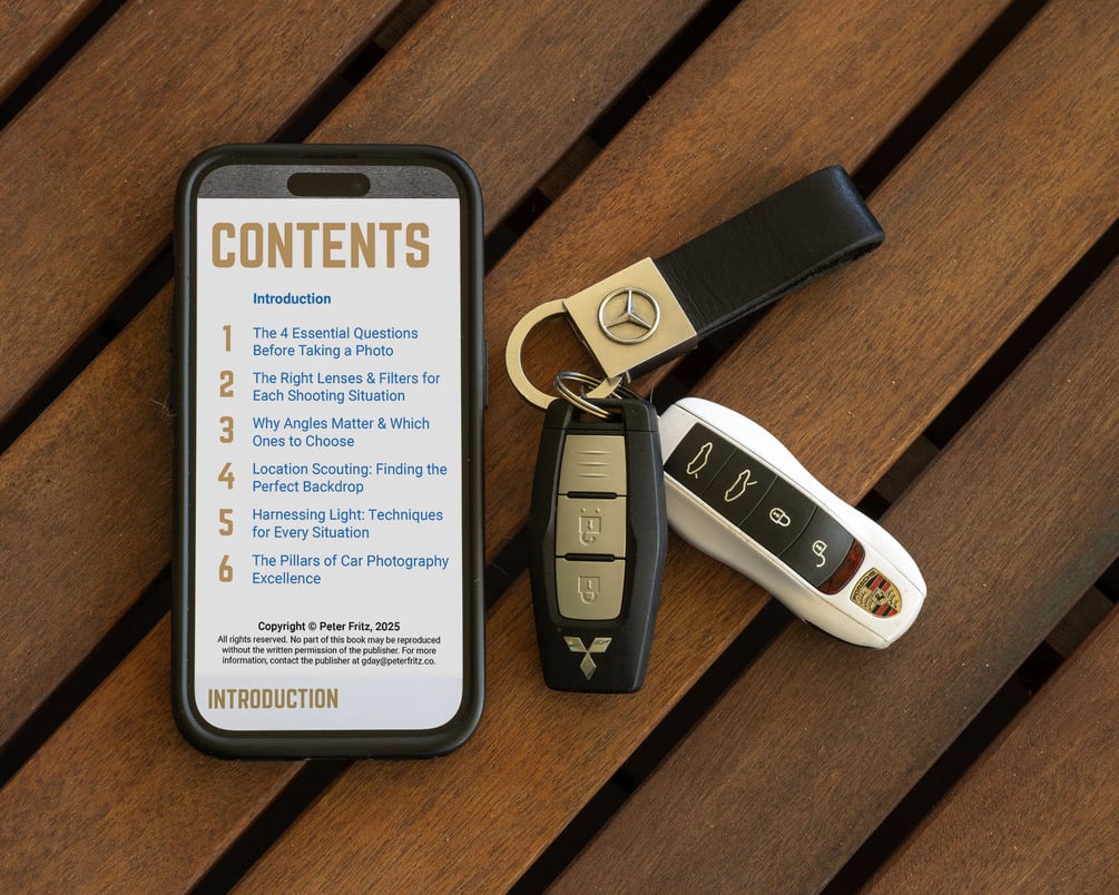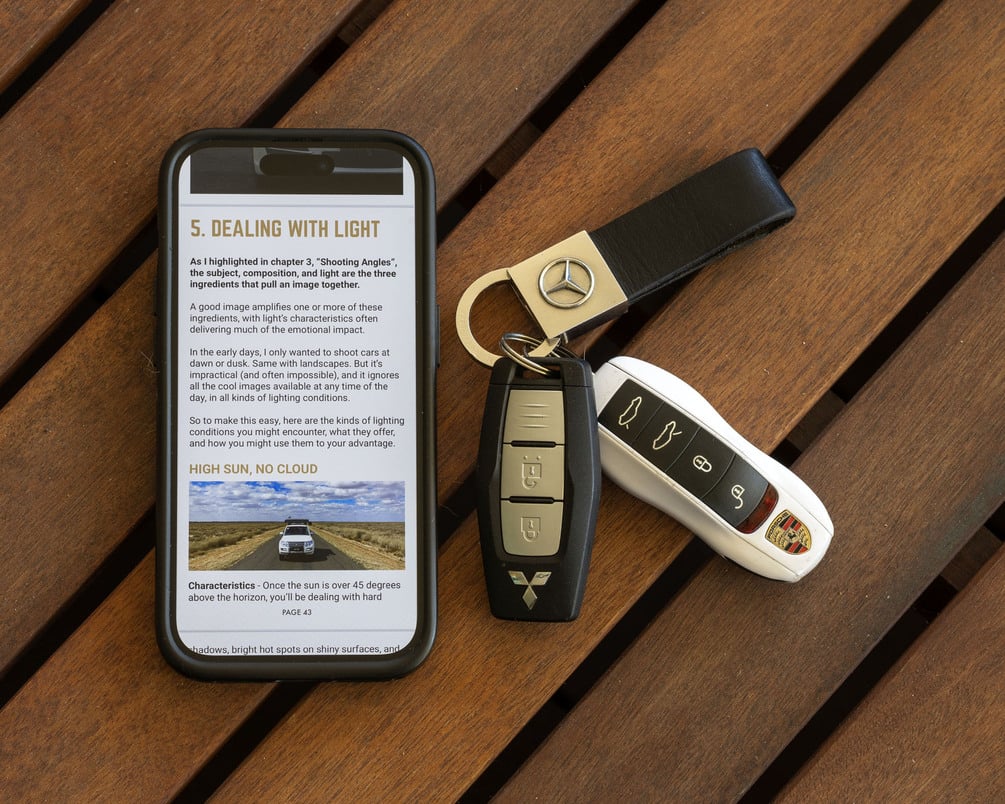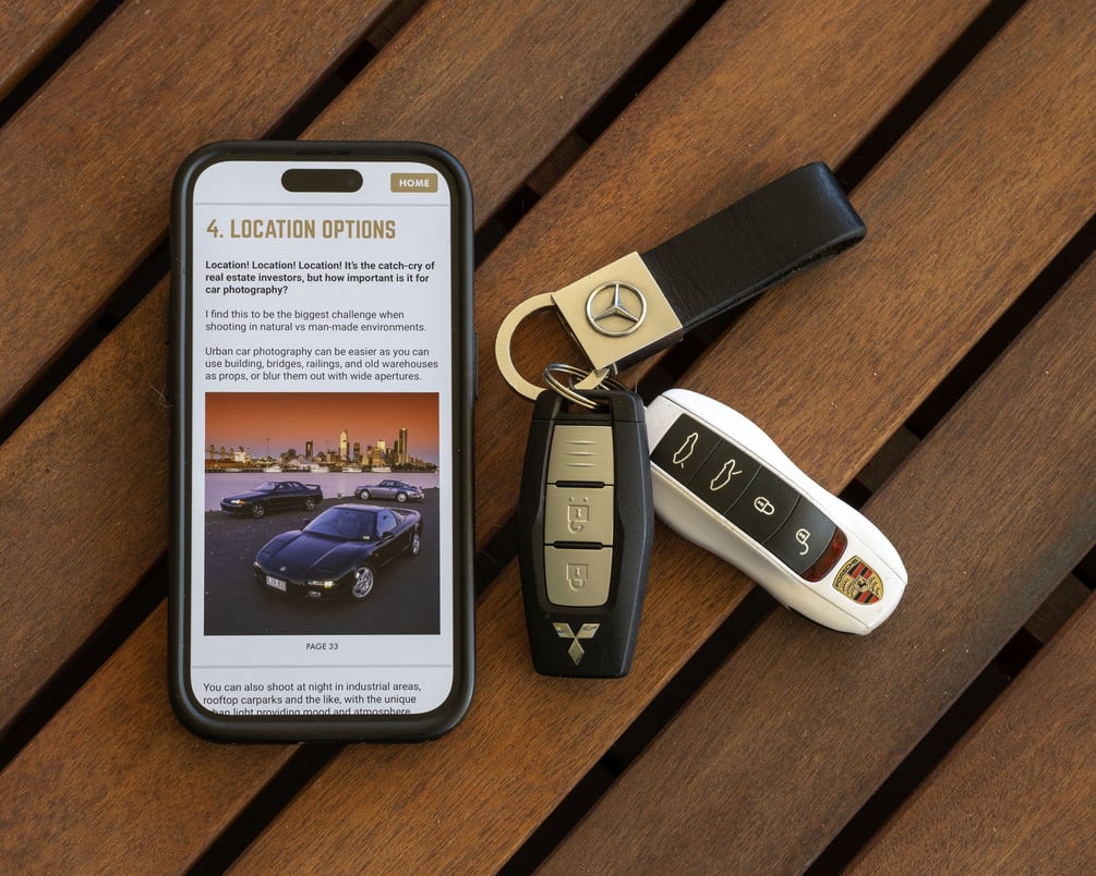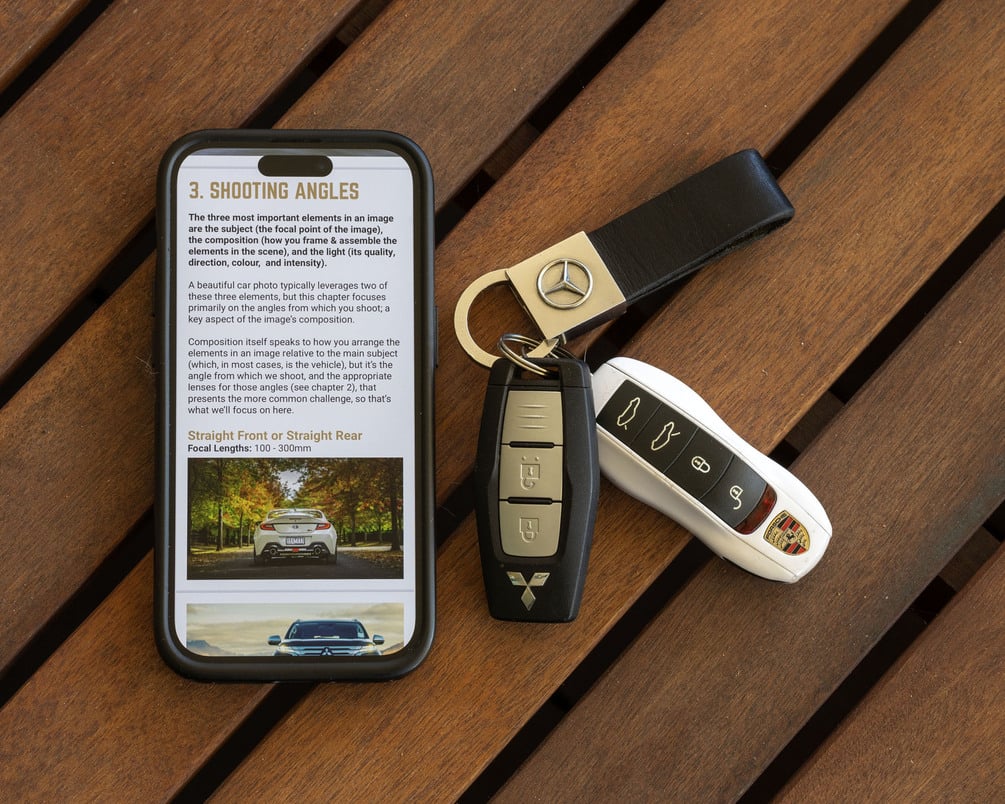 You'll get the 70-page Car Photography Field Guide in PDF format, ready for viewing on your smartphone.
